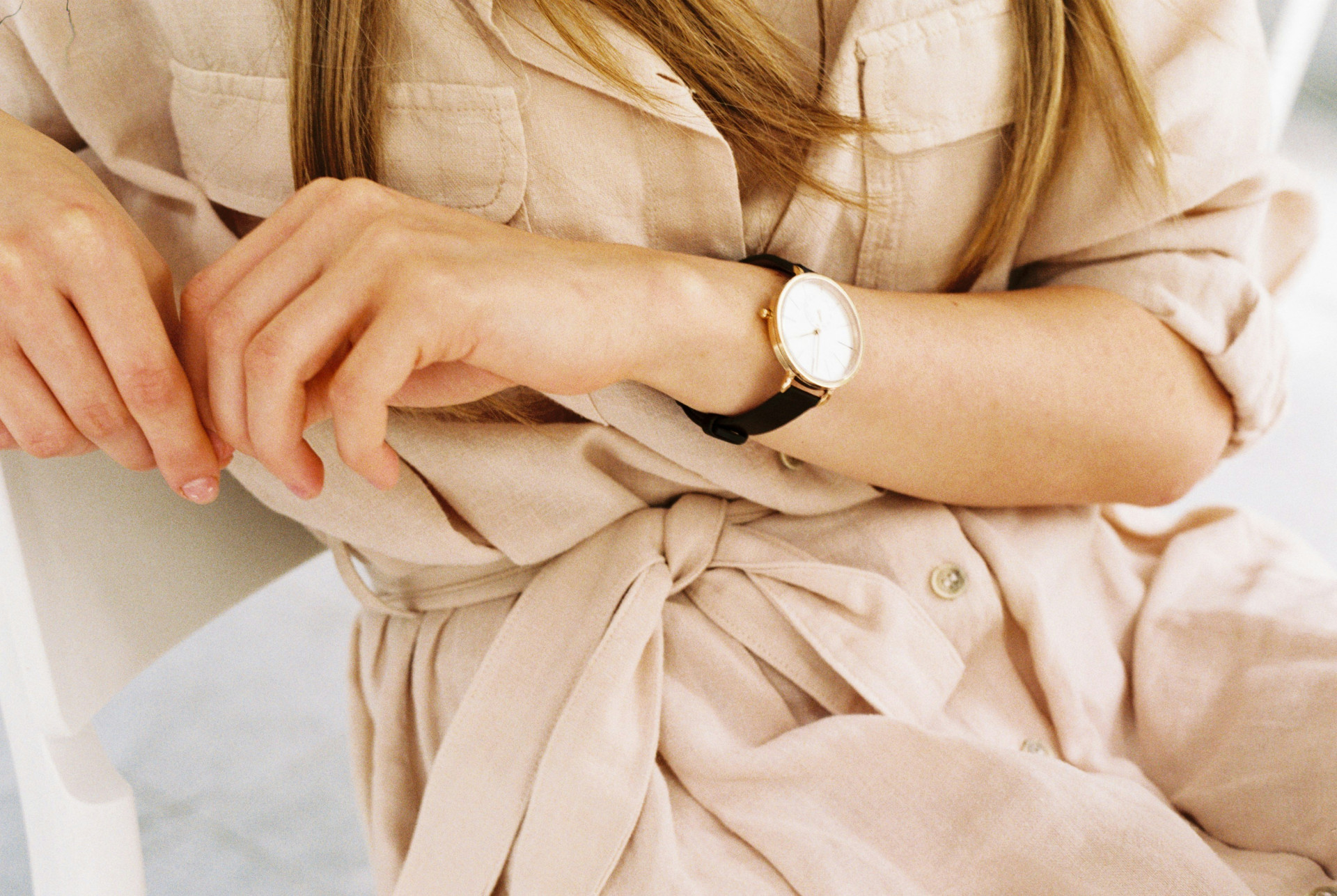 Hvis du bærer ur, kan du vælge et design, der matcher dine øvrige smykker – for eksempel et ur med en tynd rem og en diskret urskive. Det giver et sammenhængende og velovervejet udtryk.